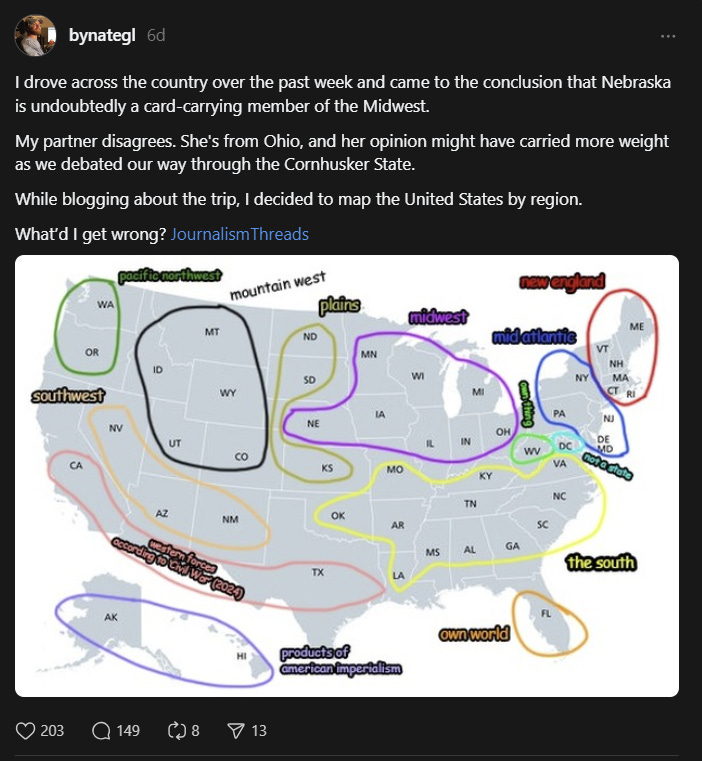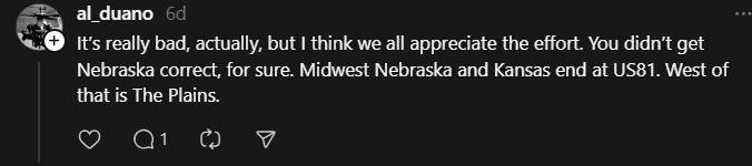 I tweeted (threaded?) my Microsoft Paint regional map of the U.S. last week. I wasnât expecting much in the way of feedback, but some of the one hundred and forty-nine replies I did receive were pure comedy.