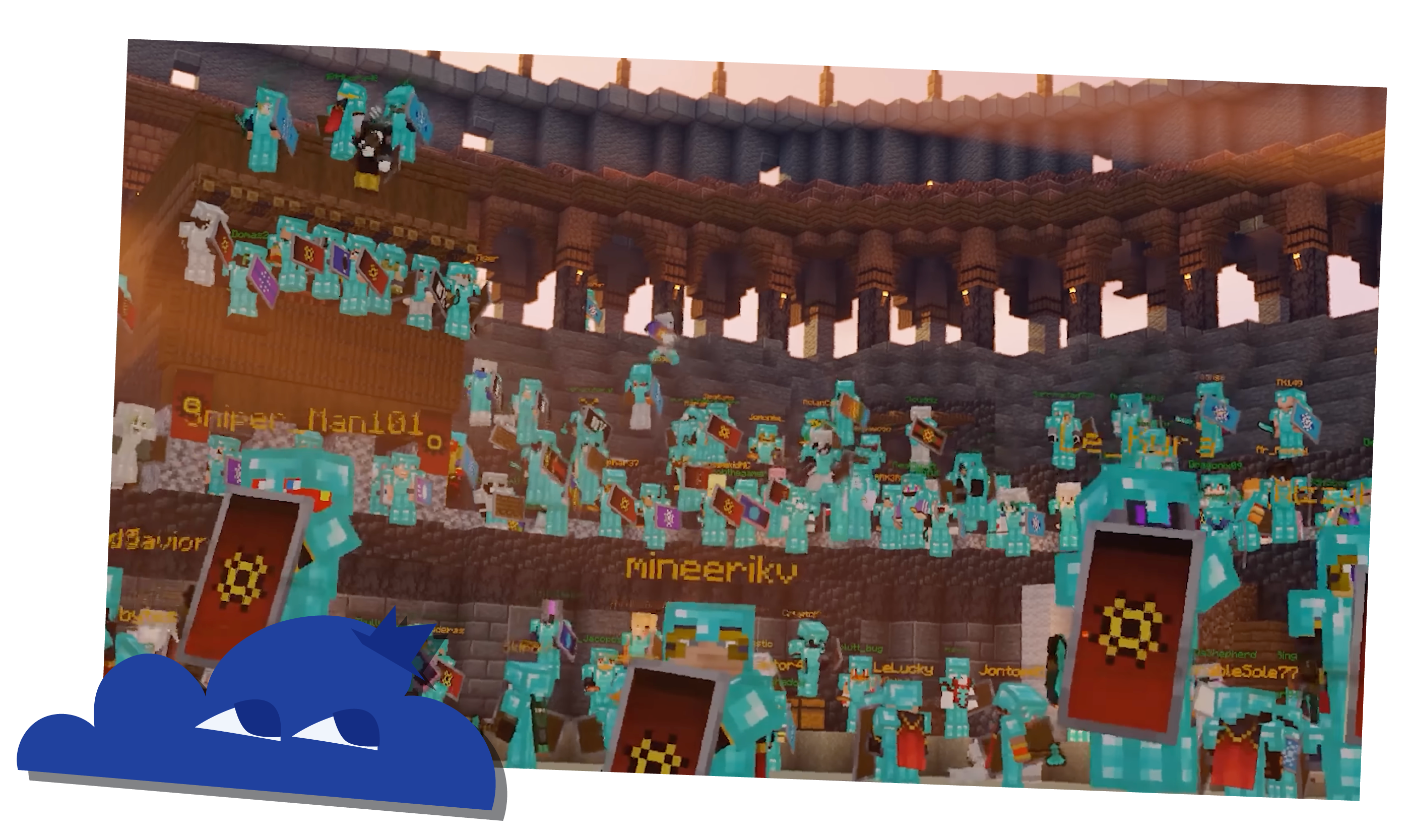 What follows is a two-and-a-half-hour cinematic experience that truly needs to be seen in order to fully grasp its scale. One player, Schpood, arouses suspicion upon giving his peers rare food for free. Following an assasination attempt on his life, he rides his newfound martyrdom all the way to becoming the bloodthirsty Emperor Schpood, going so far as to build his own rendition of the Colosseum.*