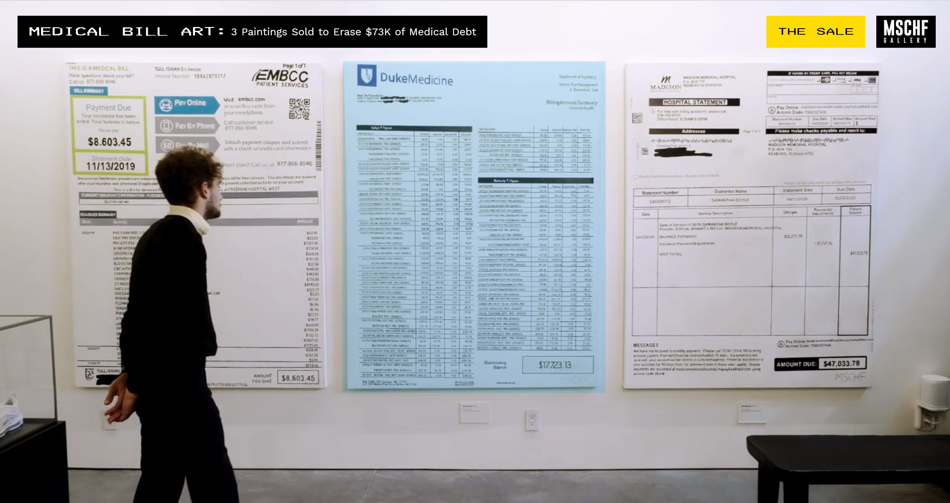 Branded “We turn your pain into paintings,” the shadowy group known as MSCHF is back with one of their most ambitious drops ever: selling normal people’s medical bills as high-end art in order to pay off the debt in of itself.