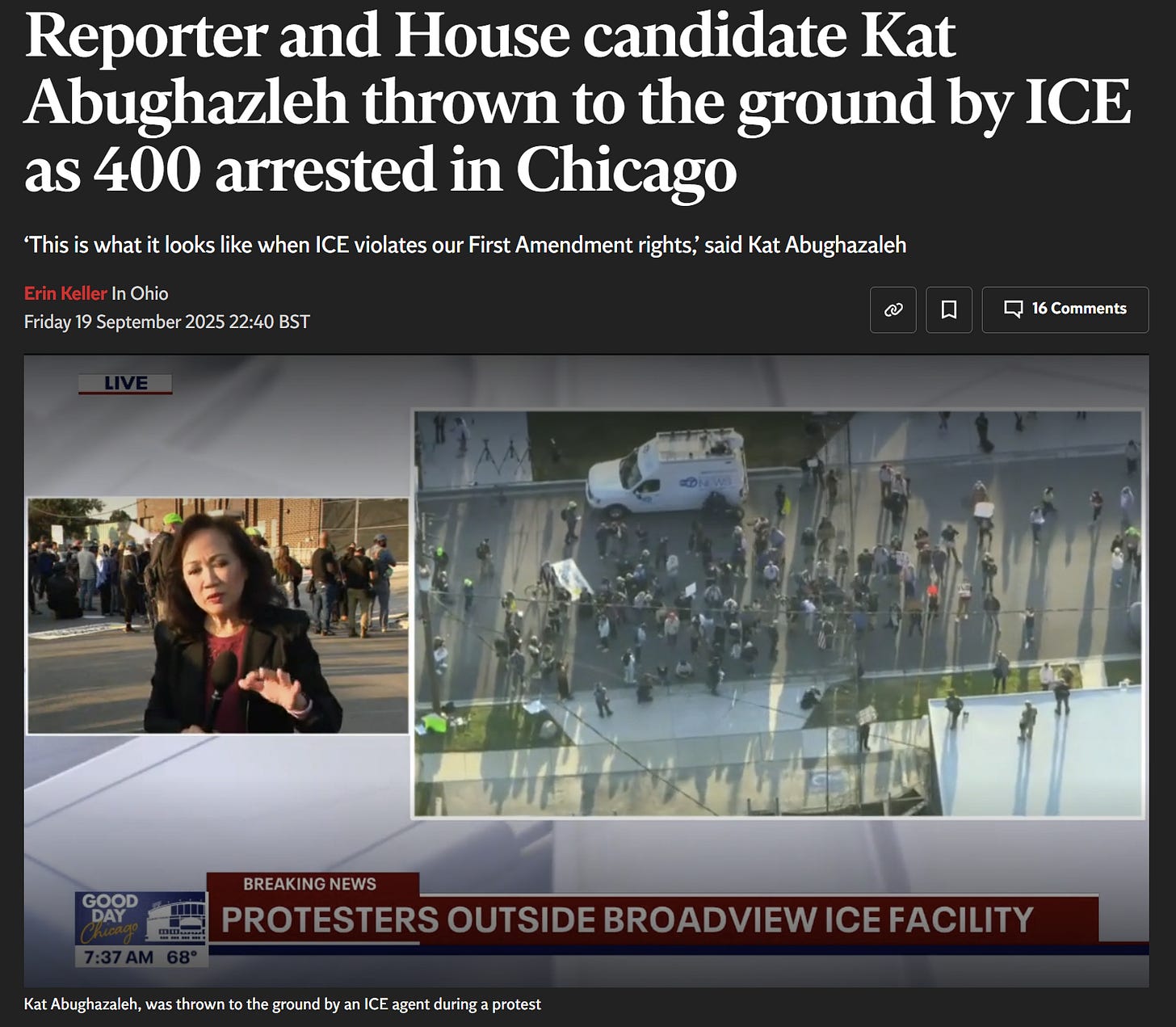 Six months later, the Democratic congressional candidate has become a leading figure at protests outside the Broadview ICE facilityâa facility one judge described as âunnecessarily cruelâ due to overflowing toilets, crowded cells, and water that âtasted like sewer.â In October, the Trump Administration indicted Kat and five other protestors on one count of conspiracy, along with allegations that she âforcibly impeded, intimidated, and interferedâ with an officer (Kat pleaded not guilty, labeling the charges as âpoliticalâ in nature).