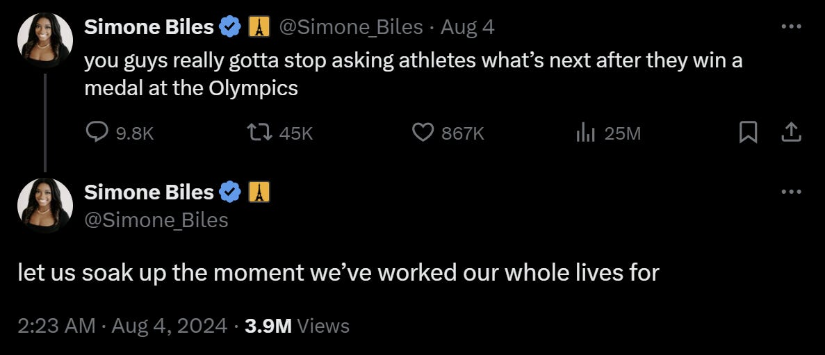 I think we need to stop saying âcanât wait to see what you do next.â I see this sentiment a lot in YouTube comments for up-and-coming creators, and Iâve even heard someone say it to me verbally. And while I donât believe the phrase is put out there with malintent (itâs a compliment!) Iâm still reminded of this tweet from gymnast Simone Biles during the Olympics last month: