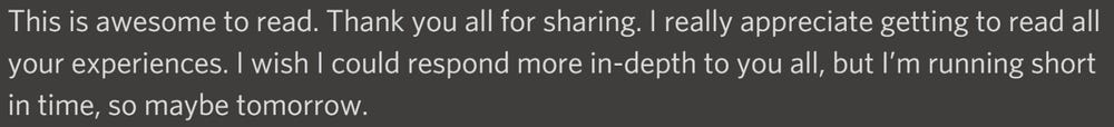 Yes, if the Facebooks and Reddits of the world have shown us anything, there is a monetary incentive for bringing groups of people together. Yet in the end, I wholeheartedly believe the notion that the best products are the ones that improve our lives, not the ones that profit off of our attention, anger, and time. Why I’ve decided to really focus on building out our community is because I believe that the value proposition is strong and necessary, and when I wake up in the morning, the thought of continuing to strengthen this group of people gives me a real sense of purpose.