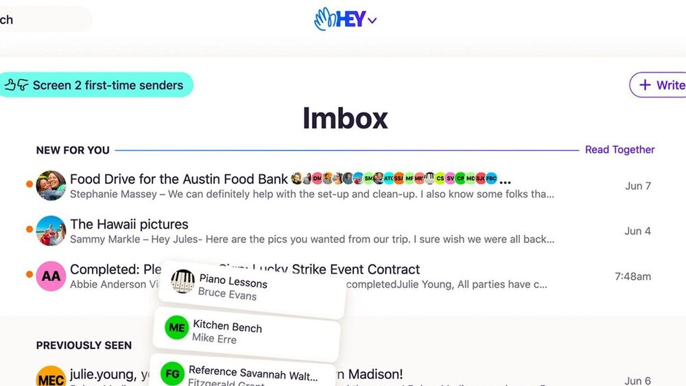 The Screener: When you receive an email from a new contact, they land in The Screener, where you click Yes or No to decide whether you want to receive emails from them moving forward.
