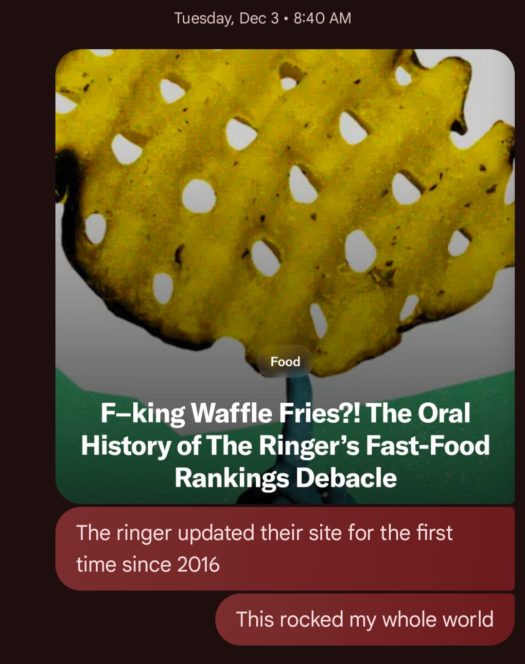 So imagine how much my whole world was rocked at the beginning of the month, when The Ringer dropped a massive overhaul of their site design for the first time I can remember.