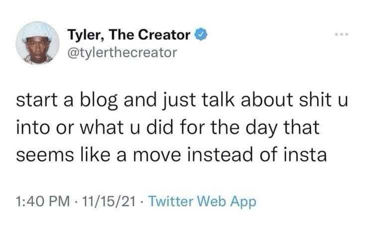 Several housekeeping notes. First, Iâve been using this space to check in every Sunday with some of the thoughts that are stewing and things Iâm seeing within my purviewâin particular, the relationship between creator culture and social infrastructure.