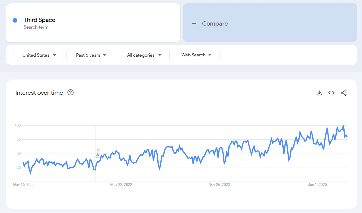 The main reason it’s evolved, though, is because it feels like the tide is turning. Per Google Trends, more people are searching the phrase “Third Space” than ever before.