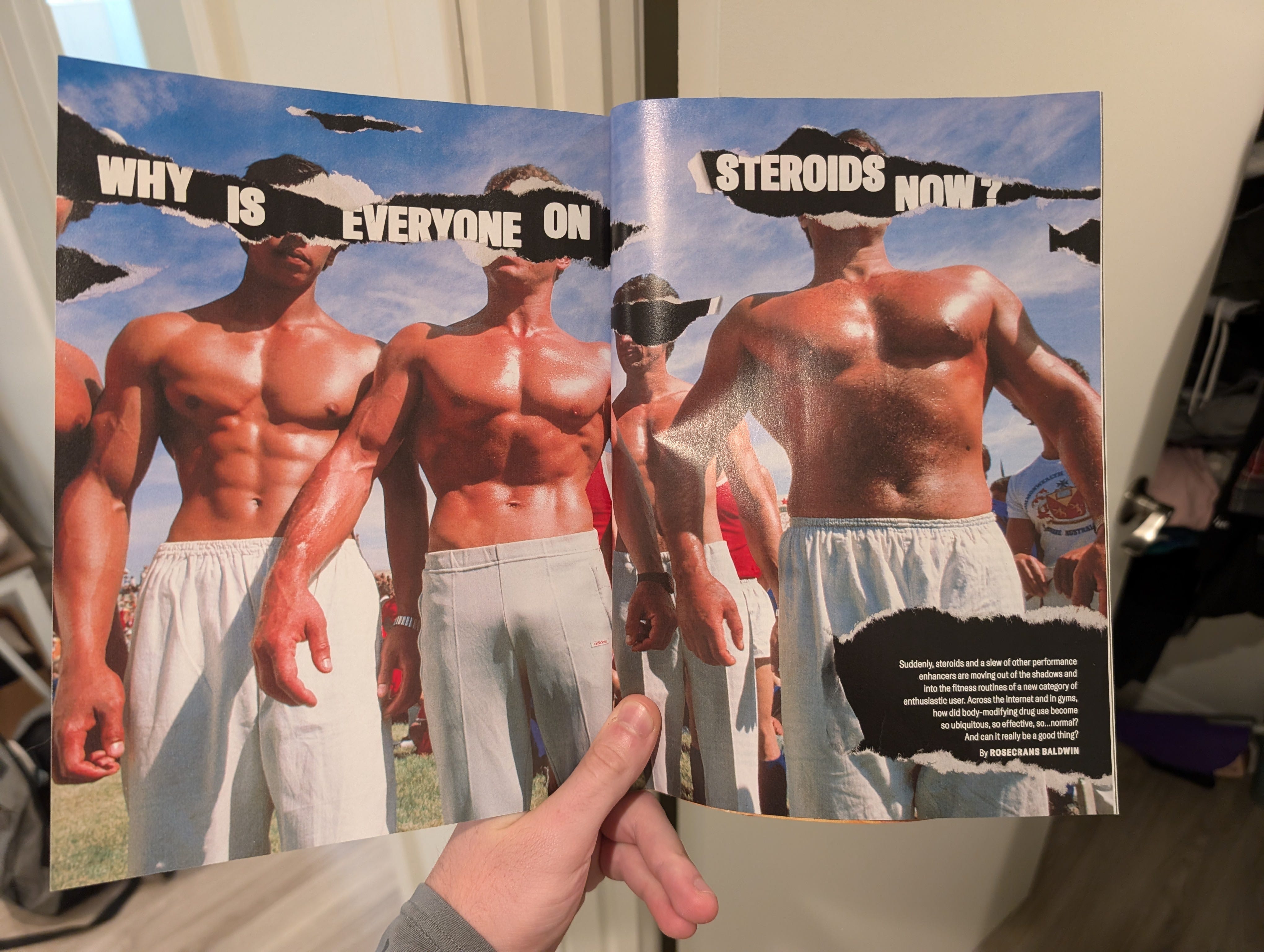 Regarding steroids, I recently read a great piece by Rosecrans Baldwin* in GQ called “Why is Everyone on Steroids Now?” which starts with this banger of a hook: