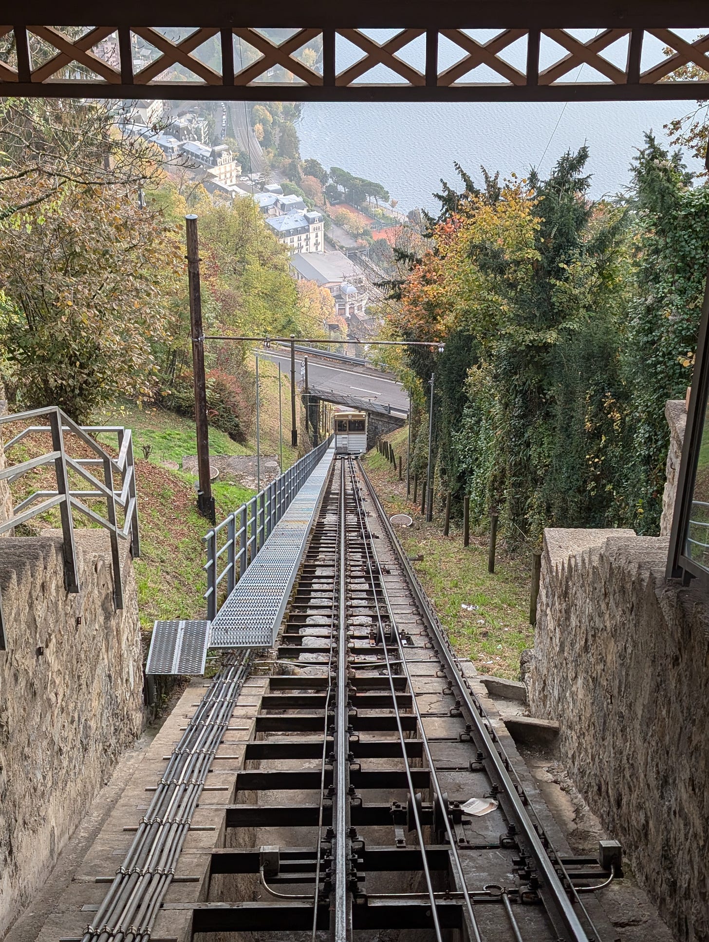 I think funiculars are the final evolution of train-based transportation. After Vicky and I left the castle in Montreux, we had over four hours until our train back to Geneva. So weâŠkinda wandered, and found ourselves walking up an entire mountain.