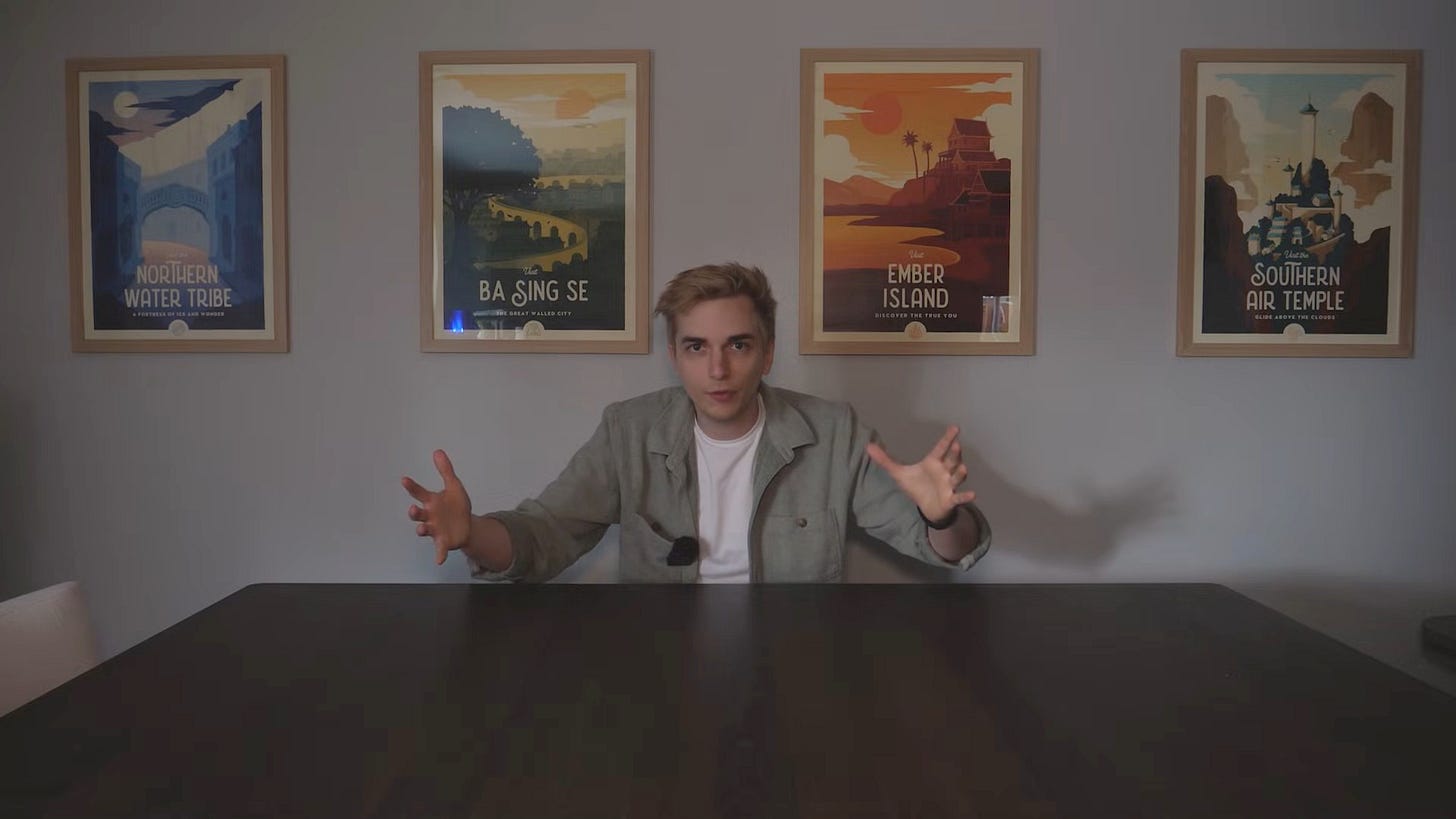 The topics Gooden addressed in this video weren’t exactly niche. What struck me was the creator’s delivery. In a little over half-an-hour, he tied a clear thread between complicated, wide-ranging issues, all from a home office with a “Mancave Open 24/7” sign on the wall. Quips and quick cuts mixed effortlessly; Gooden even joked about the irony of pausing to deliver a brand deal in a video about greed (it was for a VPN, because of course it was).