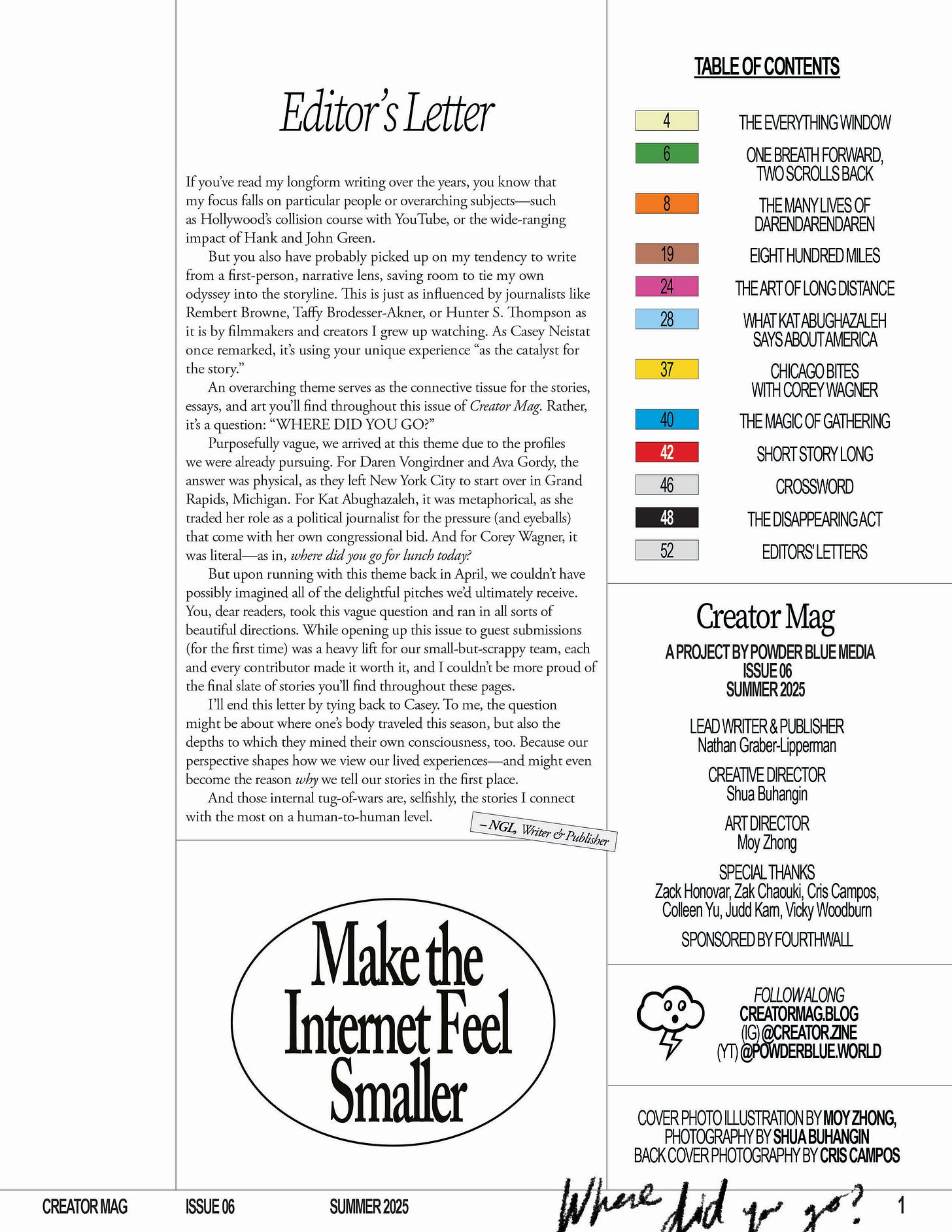 We dropped Creator Mag Issue 5 on March 29. We took a small break to recharge, then we hopped right back on the horse. And over the last several months, we created another beautiful print zine, featuring 21,339 words from over ten unique contributors.