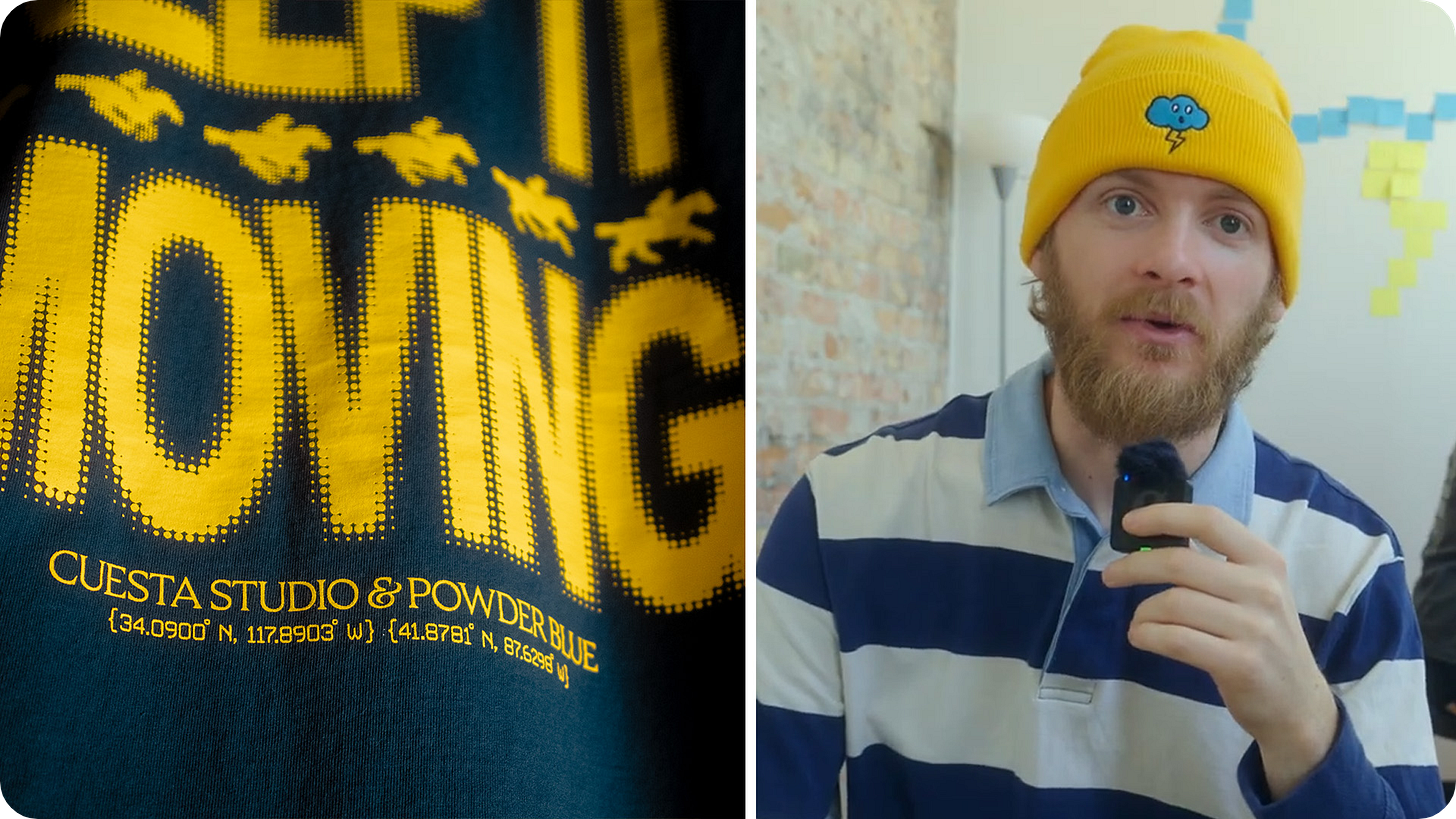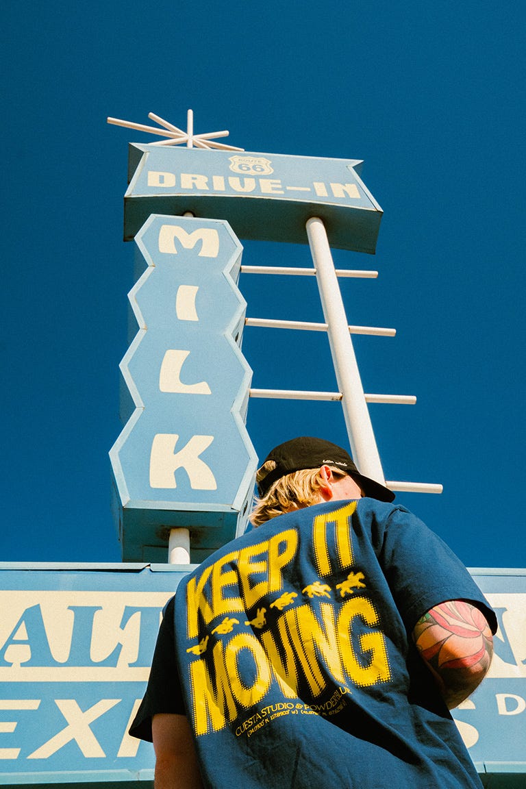 And he led the entire photoshoot out in Los Angeles for our first apparel drop: The Cuesta Studio x Powder Blue âKeep It Movingâ collection.