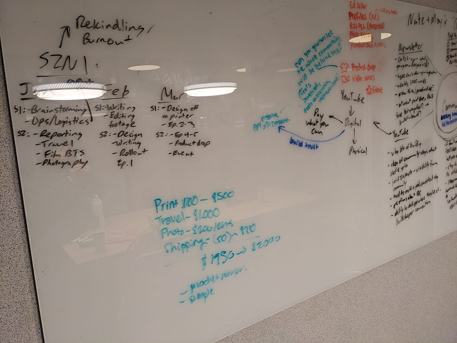 I was visiting Seattle, and we whiteboarded in a WeWork conference room for a couple hours. A beautiful print magazine would, of course, serve as the launchpad for everything: this weekly blog, our YouTube channel, and regular gatherings (including the quarterly Block Party).