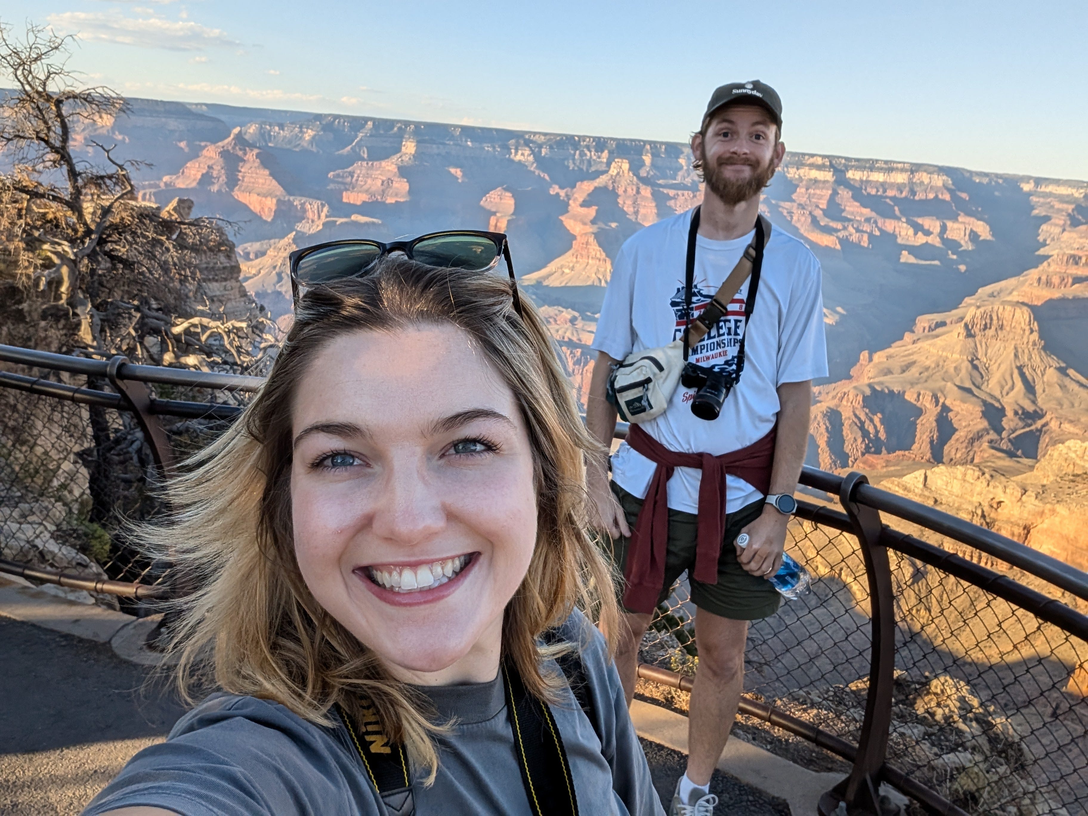 Vicky has never seen the Grand Canyon, so right before the sun sets on the first day of our trip, we make sure to check this southwestern staple off of the list. Upon rushing out of the car, the first thing we encounter is a fully-grown elk—laying down and staring at us from the side of the Rim Trail, almost like it’s bored with how normal the whole situation (along with the giant hole to our left) is.