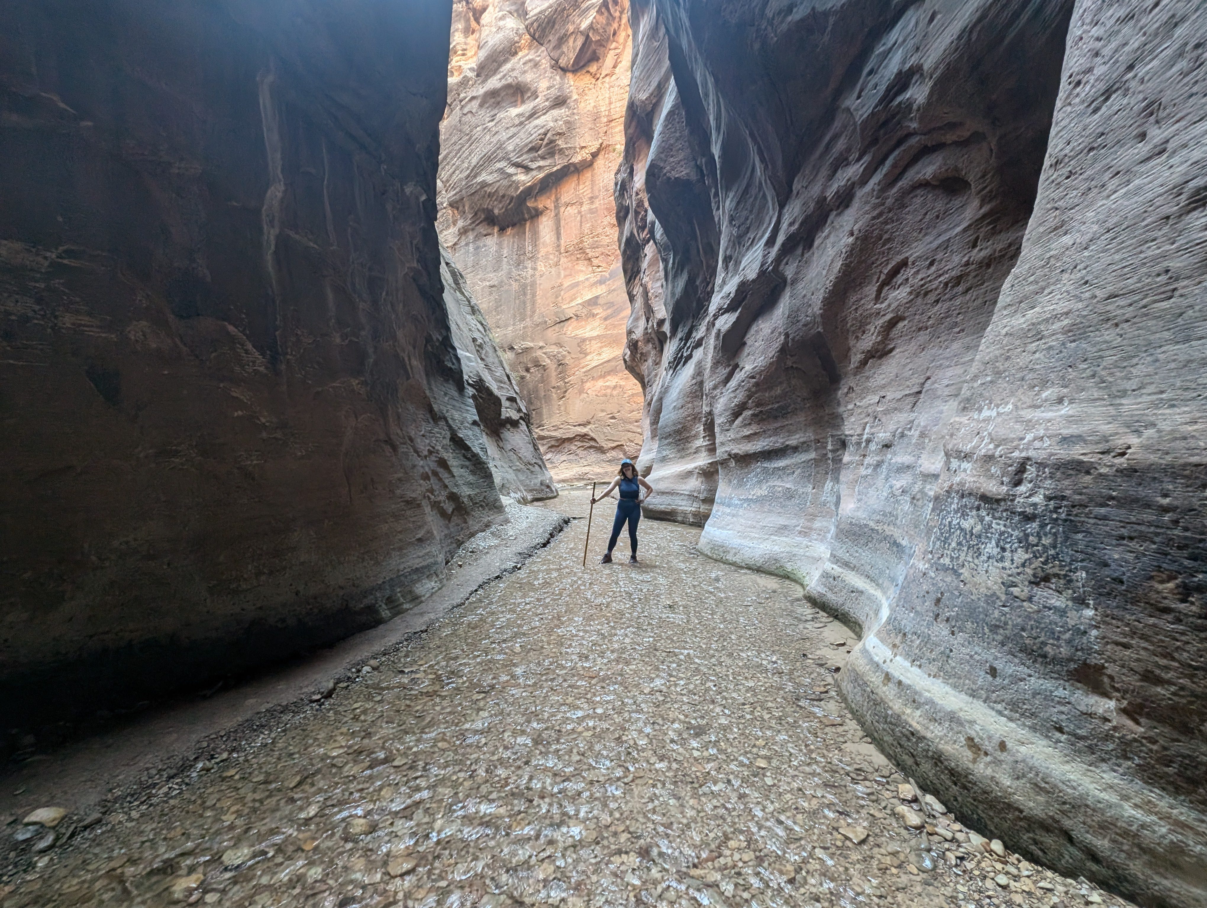 Almost. See, I'm the one who really pushed us to do this hike, and yet I look up and observe Vicky forging ahead. And I'm glad she did! We end up making it roughly four miles in, where the cliffs get skinnier and the views grow more stunning.