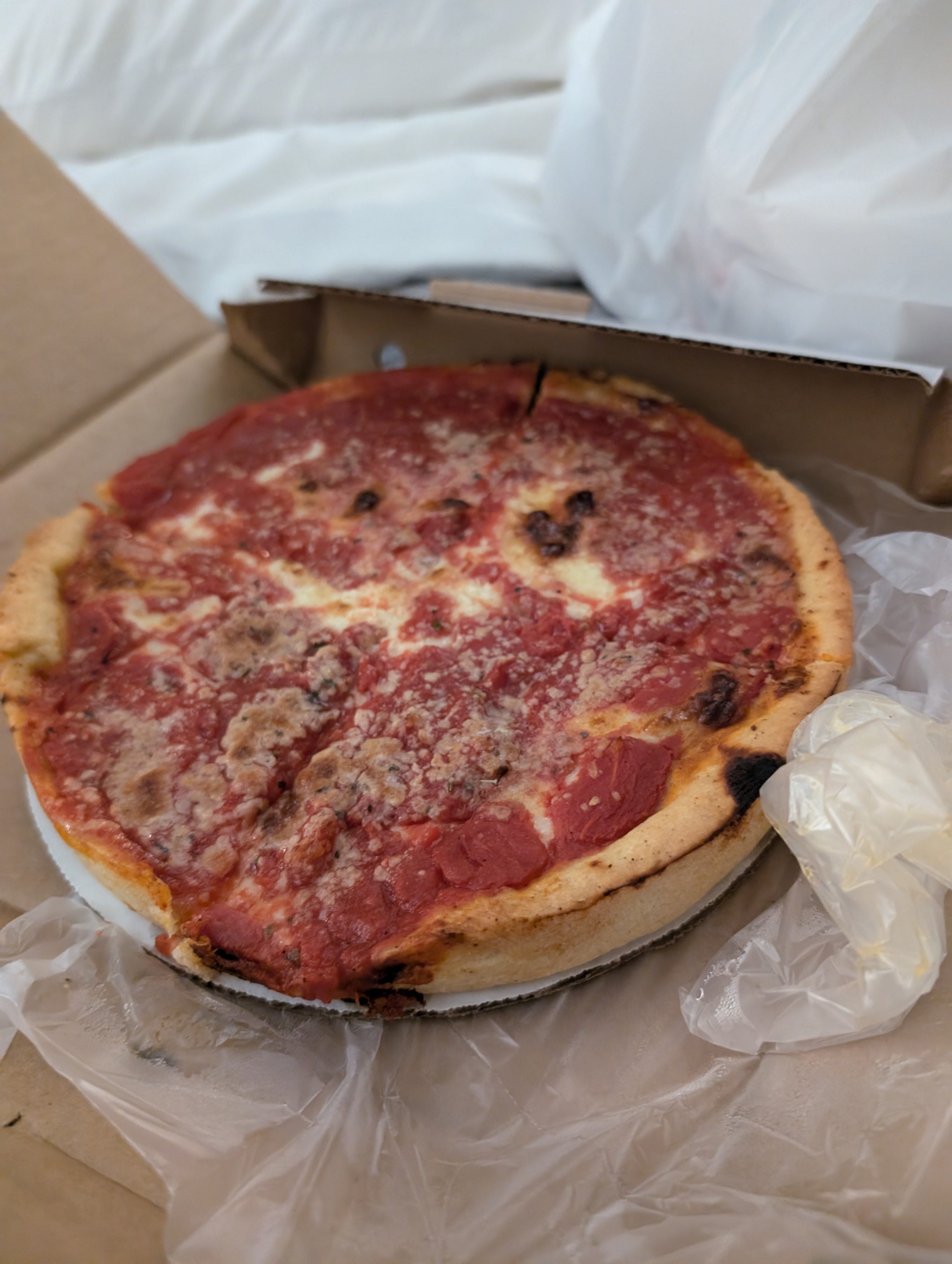 An early affinity for Gio’s cavernous pies and gobs of Wisconsin cheese slowly gave way to Lou’s perfect tomato sauce and crispy crust by the time I graduated. As I’m now passing through Joliet (a suburb south of Chicago) on the last leg of our trip, one thing leads to another, and a craving for Lou’s results in a Uber Eats delivery order.