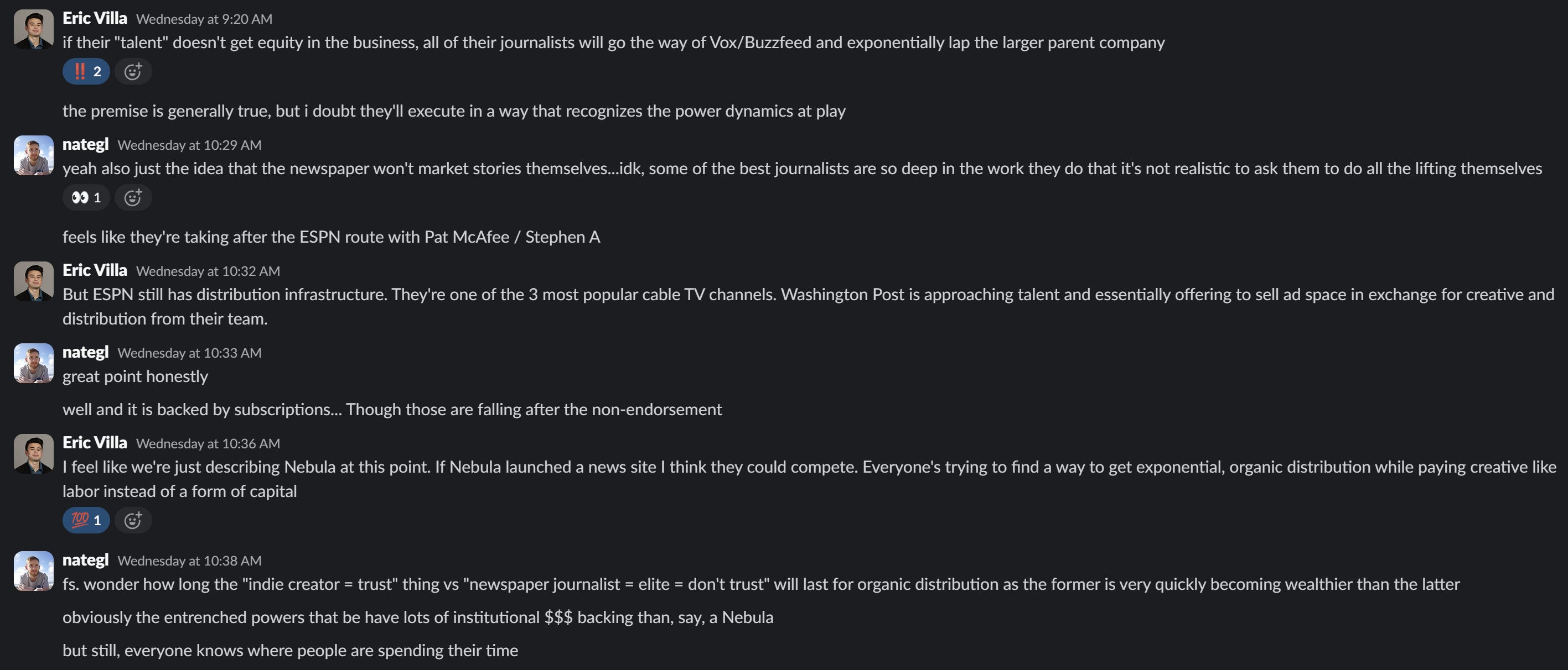 I think The Washington Post’s decision to lay off their PR team in favor of “talent-driven journalism” and “creators” is absurd. A completely different topic than The Brutalist…but I thought a screenshot of this conversation in the Powder Blue Slack was worth sharing here: